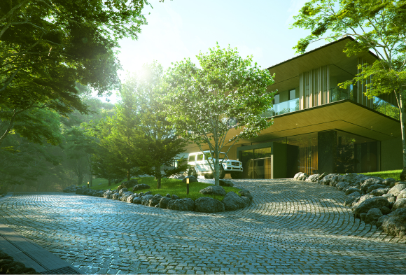 季節によって変化する木漏れ日、北欧の美意識をデザインに取り込み、自然に溶け込む空間を目指しました。