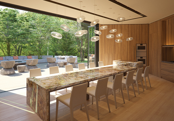 類を見ないユニークなアメニティである OST Clubhouse。ここは家族での食事や、友人とのカジュアルな集いに最適な空間です。クラブハウス内にあるシェフズキッチンには、美しいダイニングテーブルと最先端のビルトインキッチン設備を完備しています。